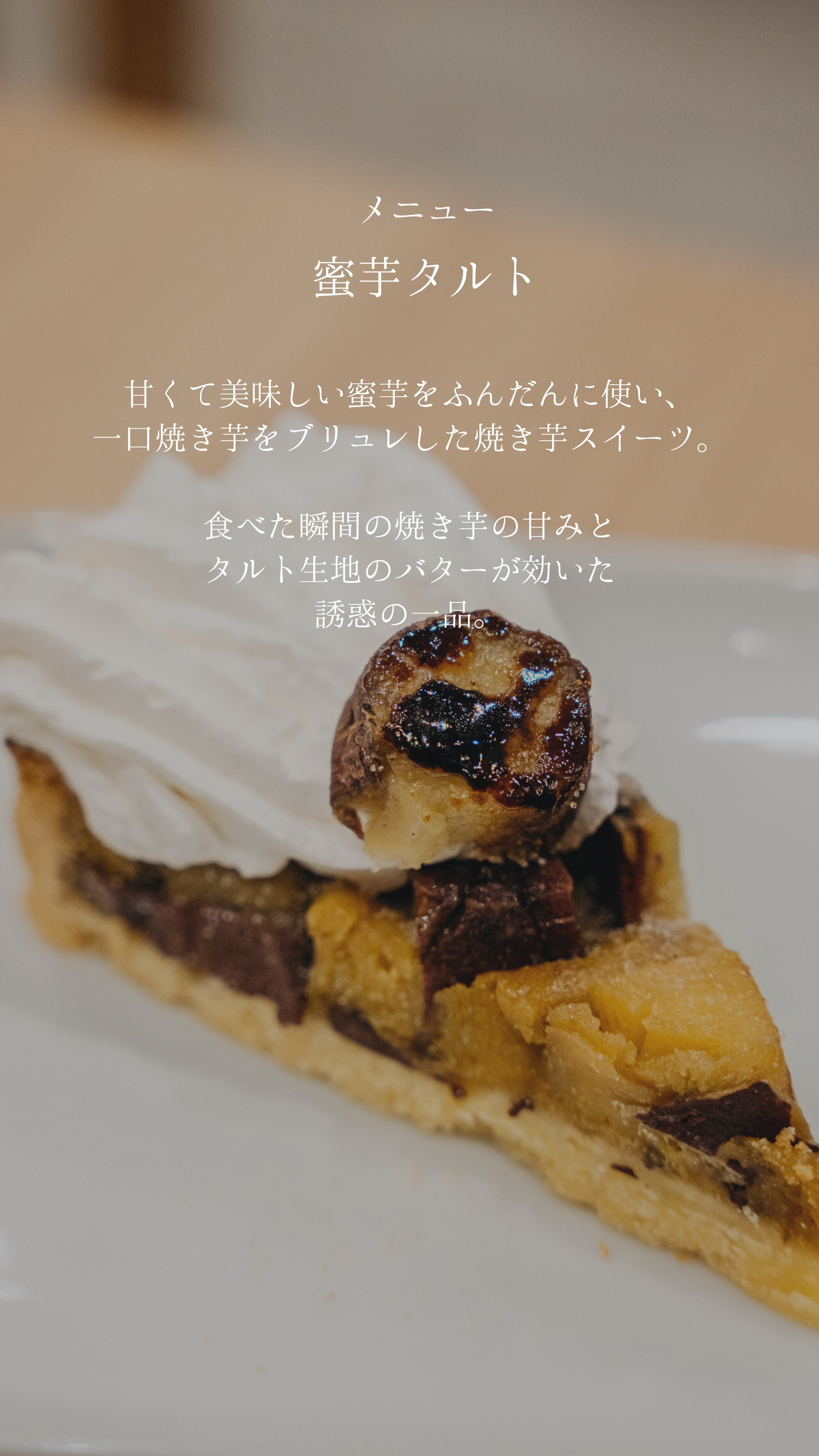 甘くて美味しい蜜芋をふんだんに使い一口焼き芋をブリュレした焼き芋スイーツ。食べた瞬間焼き芋の甘み、後からくるバターが効いたタルト生地 一度食べたらやめられない究極一品